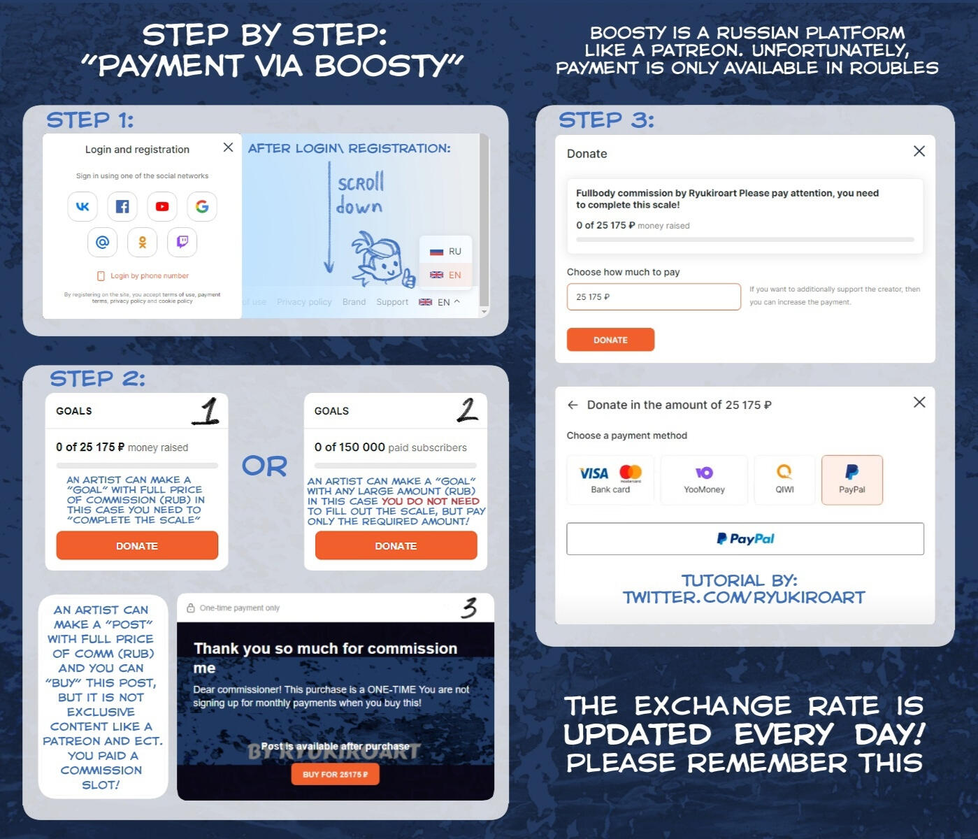 • To pay the commission you can use: PayPal, YooMoney, Qiwi, Bank Card.• Payment is made through the Boosty server. I will explain why:My paypal account cannot accept payments at the moment. But you can still use paypal and the other payment methods listed above.